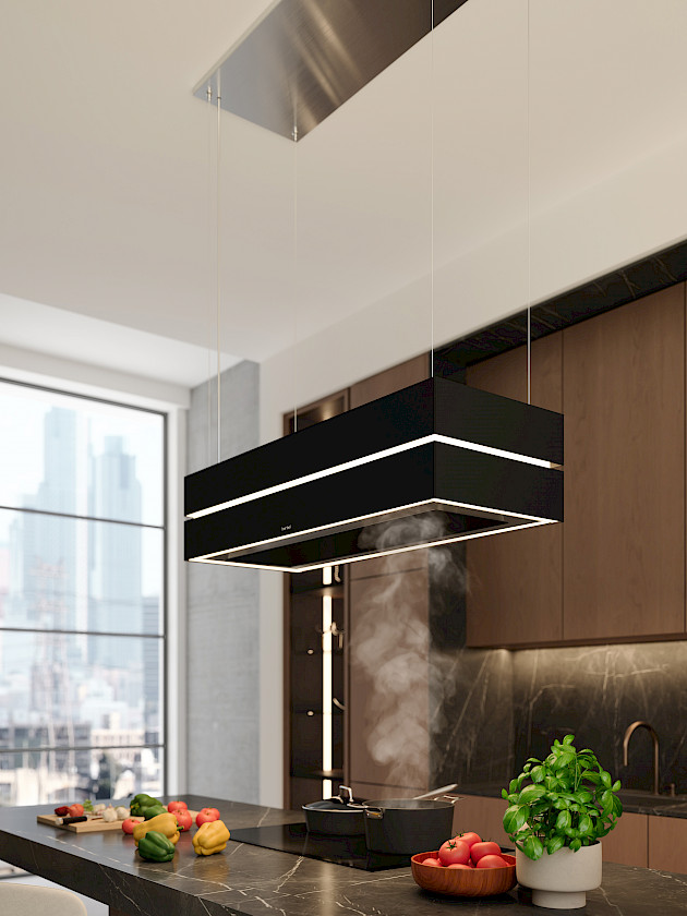 Die berbel Inselhaube Skyline Edge Base integriert sich perfekt in jedes Küchendesign.